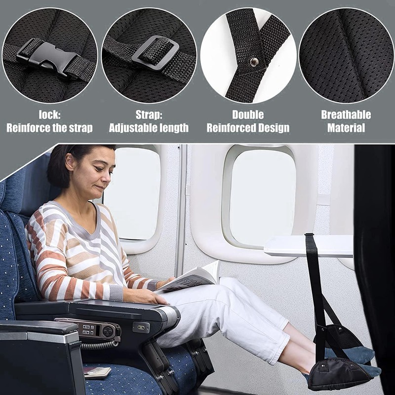 - Easy to use-just hanging this traveling footrest to the bracket of the tray table,then put your foot on it.