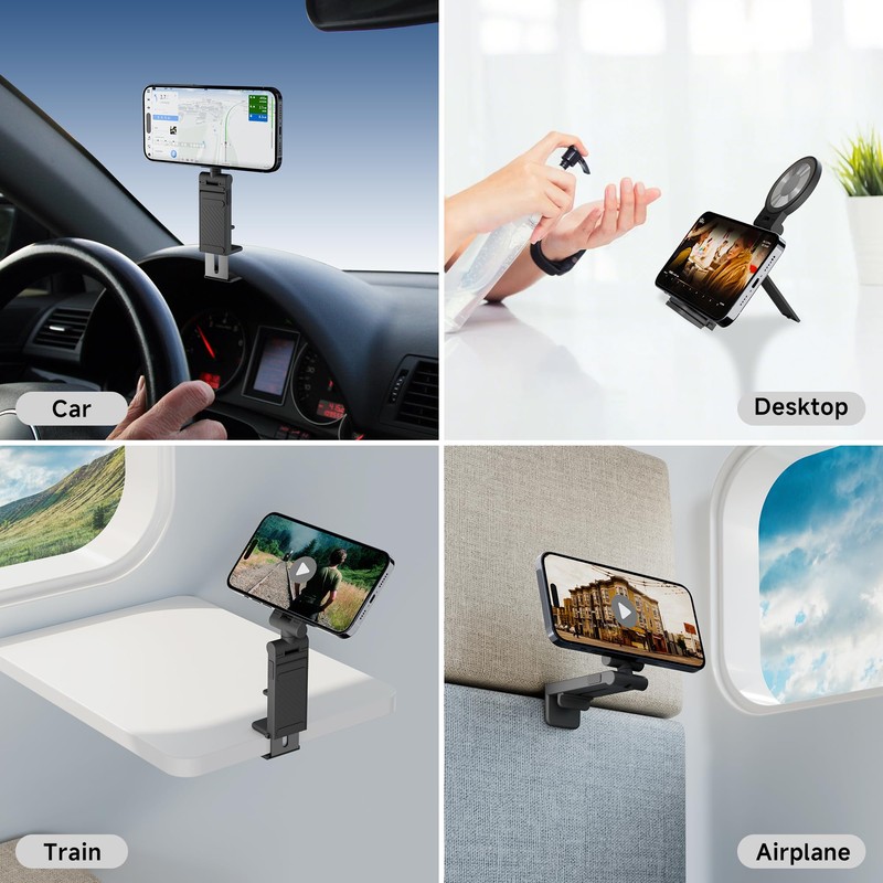 - How to Use: Method 1: Push the inner button to open the bottom clamp. Attach the product to airplane tray, desk edge, or cabinet edge. Method 2: If your desktop is too thick, open the back cover of the phone stand and use it as a desktop stand. If your friends, loved ones and family members have travel plans, this travel accessories will be the perfect gift for them on Valentine's Day, Christmas, New Year and Birthdays! We guarantee the quality of our products, if you have any questions, please contact us