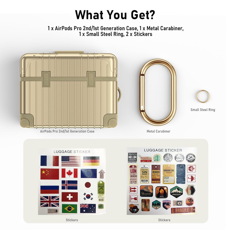 - 【What You Get】1x Suitcase Case for Airpods Pro 2nd Generation/1st Generation, 1x Metal Carabiner, 1x Small Steel Ring, 2x DIY Stickers. Please note that AirPods Pro & AirPods Pro 2 Charging Case are NOT included.