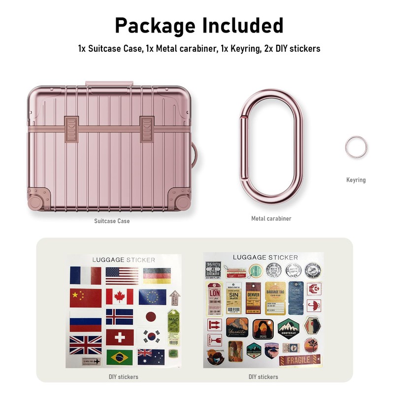 - 【What You Get】1x Suitcase Case for Airpods Pro 2nd Generation/1st Generation, 1x Metal Carabiner, 1x Small Steel Ring, 2x DIY Stickers. Please note that AirPods Pro & AirPods Pro 2 Charging Case are NOT included.