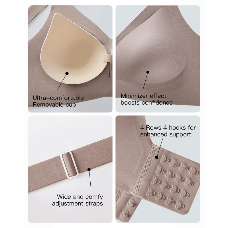 • [Full Coverage Support Minimizer Bra] Experience full coverage and support with our wireless bras. Say goodbye to wires and hello to all-day comfort. Lightweight, opaque minimizer bralette offers a snug fit