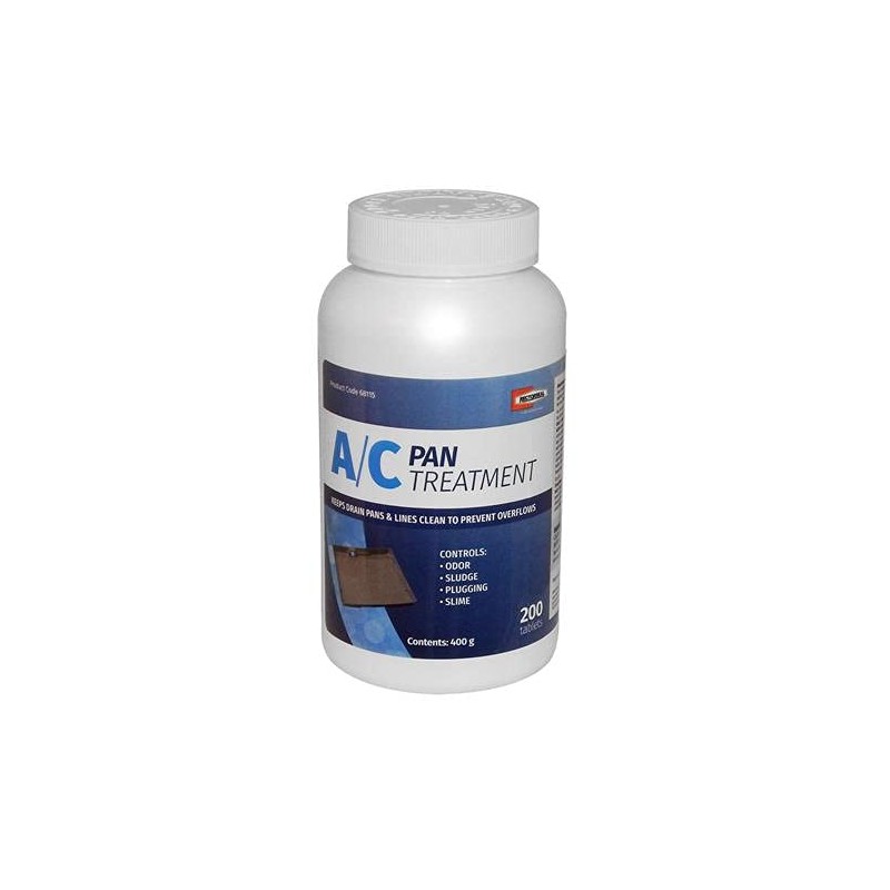 HYDREX A/C TABSAir Conditioning Drain Pan & Drain Line TreatmentHydrex A/C Tabs is designed for air conditioners, humidifiers and refrigerators, in which odors control and water overflow from the drain pan is a concern. It can also be used in the commercial air conditioning units that are commonly found in motels, hotels, hospitals, nursing homes, schools, apartment and office buildings. Hydrex A/C Tabs are packaged in plastic bottle for easy useHydrex A/C Tabs keeps drain pans and drain lines clean and free of debris.Additional Information:200 Pan Tablets per Bottle Each Tablet is 2.0 Grams Helps Prevent Clogs and Water Leaks in A/C Drain Lines Helps to Remove Build-Up in Drain Lines Prevents Growth in Drain Lines and Drain Pans Directions for Use:Start treatment by placing 2 tablets per one ton of air conditioning into A/C drain pan. Add 2 additional tablets per one ton of air conditioning every three months or whenever odor occurs. Hydrex may be more effective if the pan or reservoir is drained and cleaned before treatment ** NOTE: Completely clogged drain lines must be cleared prior to use. **Replaces / Supersedes:429660 , CHM0469 , CHM-0469 , CHM00469 , CHM00308 , CHM0308 , CHM-0308 , PT151 , Pro-Treat 151 Wagner Pan Tabs , PT200 , Pro-Treat 200 , PT217 , Pro-Treat 217 , Rectorseal 68115 , Nu-Calgon 4296-60 , Pan-Treat Scum Tabs and many other Pan Tablet Products.Additional Drain Pan Treatments and Condensate Products AvailableNote : Images are for illustration only. Actual item may vary.