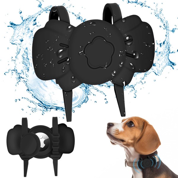 Airtag Dog Collar Holder - Silicone IPX8 Waterproof Airtag Cat Collar - Secure and Stylish, Adjustable Strap Fits All Collar Widths (2 Black)
