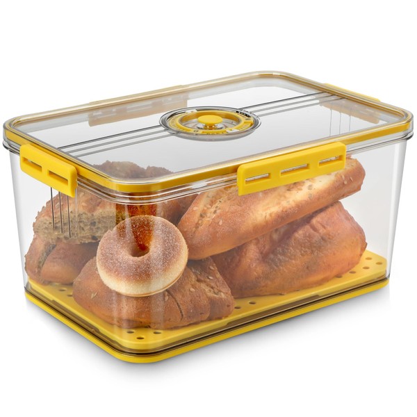 Airtight Bread Box - Clear Plastic Bread Keeper, Fresh Storage for Kitchen Countertop, Large Yellow