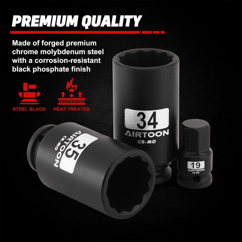 - ✅【HEAVY-DUTY SOCKETS】Made of forged premium chrome molybdenum steel with a corrosion-resistant black phosphate finish, which provides superior strength and corrosion resistance.