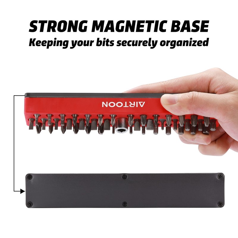 - Strong Magnetic Base: The magnetic base is strong enough to hold the bits without them falling out in a tool box . It is strong enough to hold bits even when it's upside down but easy to remove from it.