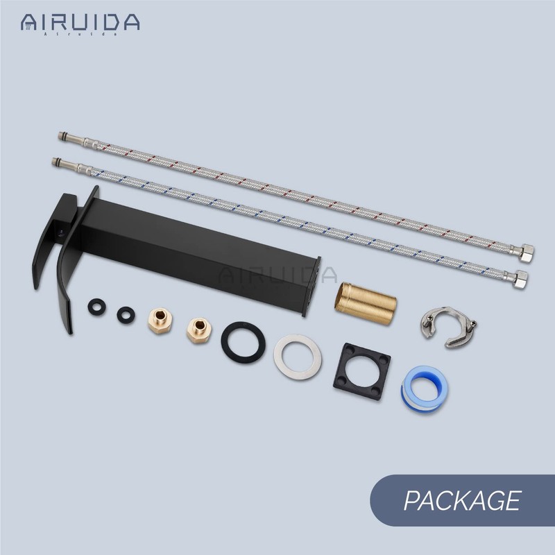 - [Design]:The ultra-wide tall waterfall spout design make large water flow. Matte black finish resist corrosion and can prevent tarnishing, highly reflective. Single handle easy control flow and temperature.