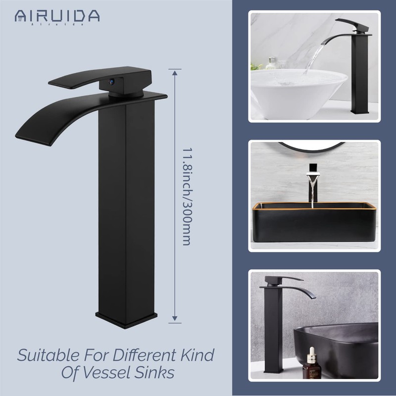 - [Installation]:Tall matte black waterfall faucet has single hole black bathroom black faucet is super-easy to install, deck mount, one hole black vessel sink faucet. Come with installation instruction.