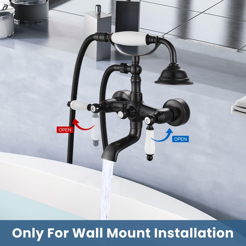 - [Installation]:Wall mount with 2 installation hole, come with installation instruction.If need Clawfoot Tub Mounted, need extra 3-3/8 swing arms.