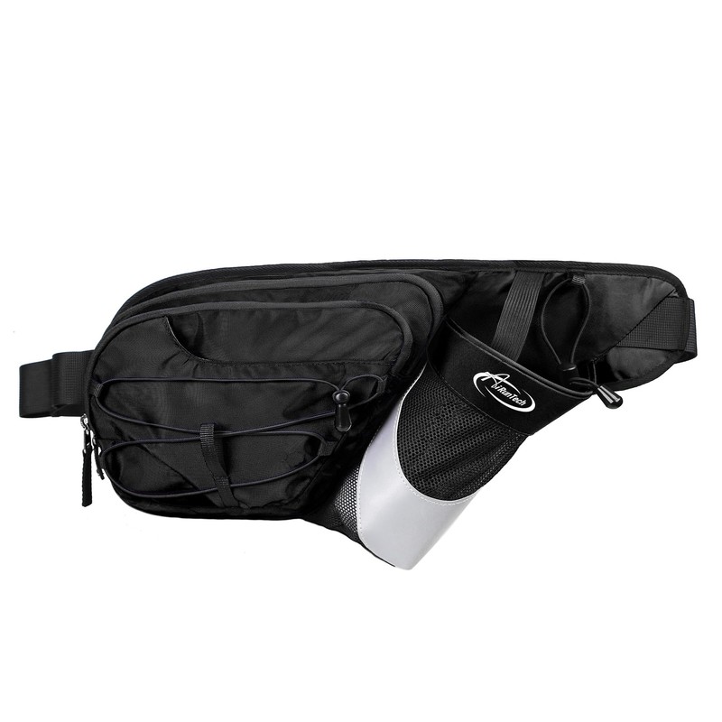 AiRunTech Fanny Pack with Bottle Holder - Large Belt Bag for Hiking, Dog Walking - Fits All Phones (Bottle Not Included)