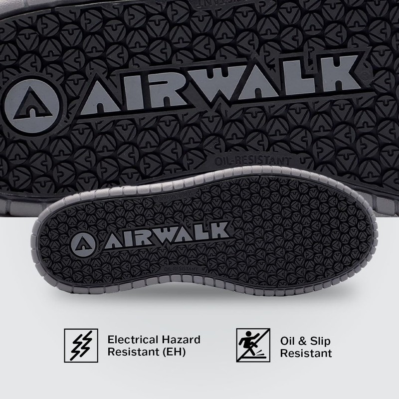 - DURABLE, CONVENIENT DESIGN: Airwalk safety sneakers are extremely durable and feature breathable and moisture-wicking lining to enhance airflow and keep your feet cool and dry throughout the day.
