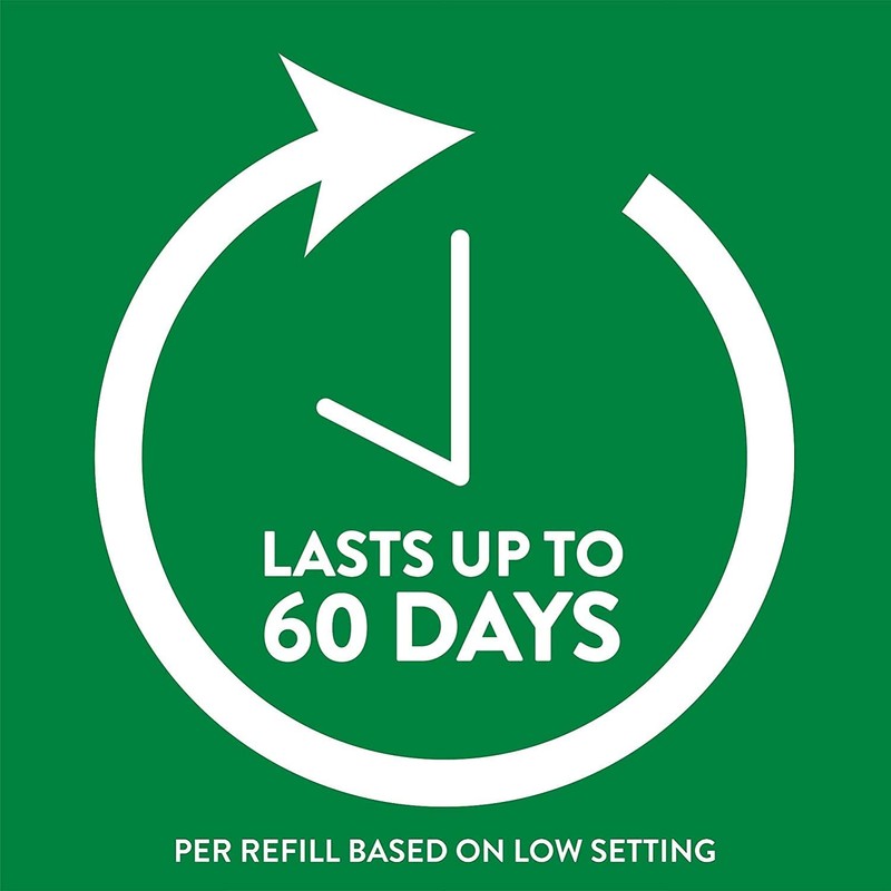 - Lasts up to 60 days per refill based on low setting