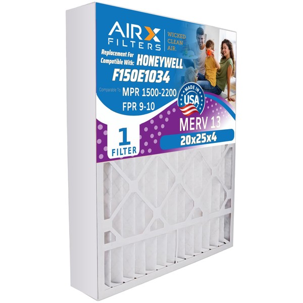 AIRX FILTERS WICKED CLEAN AIR. 20x25x4 Furnace Filter MERV 13 Compatible with Honeywell 20x25x4 Air Filter F150E1034 1 Single Filter