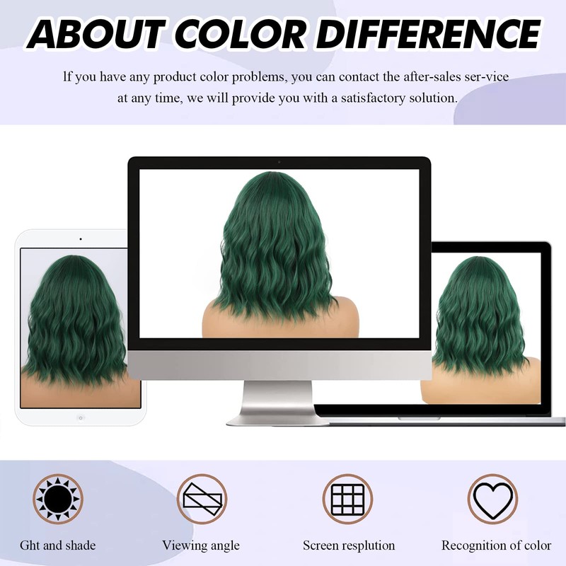 1.Wig texture: Bob wavy synthetic hair wigs,match your natural hair well.