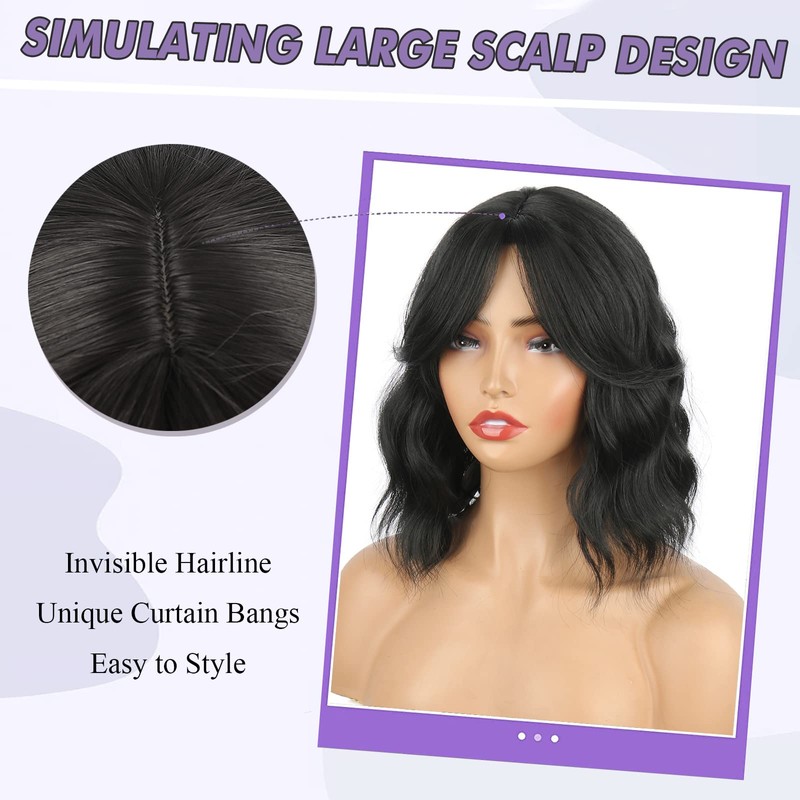 - 【Premium Synthetic Bob Wavy Wig】The short black wavy bob wigs for women is made of heat Resistant Fibre Synthetic Wig which is very soft. natural looking tangle-free,additional multi-processes make it more lightweight,easy to wear for time-saving new style.