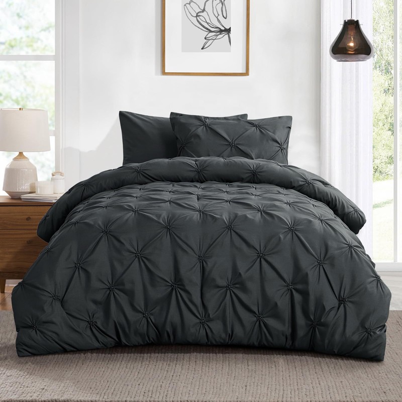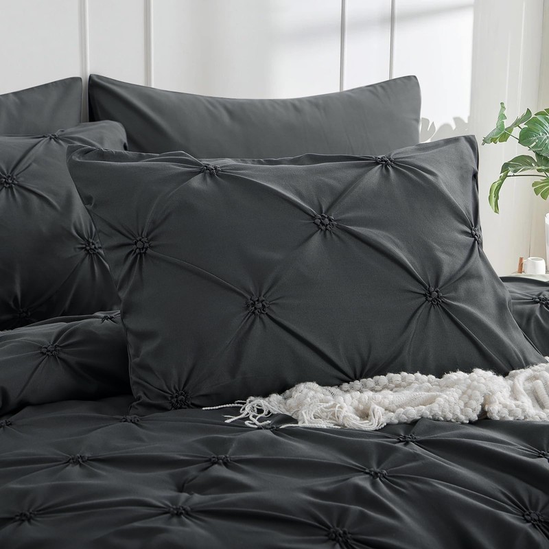 Aisbo Pintuck Comforter Set Twin - Anthracite Grey Pinch Pleated 2-Pieces Comforter Set Soft and Lightweight, All Season Down Alternative Comforter for Twin Size Bed with 1 Pillow Shams