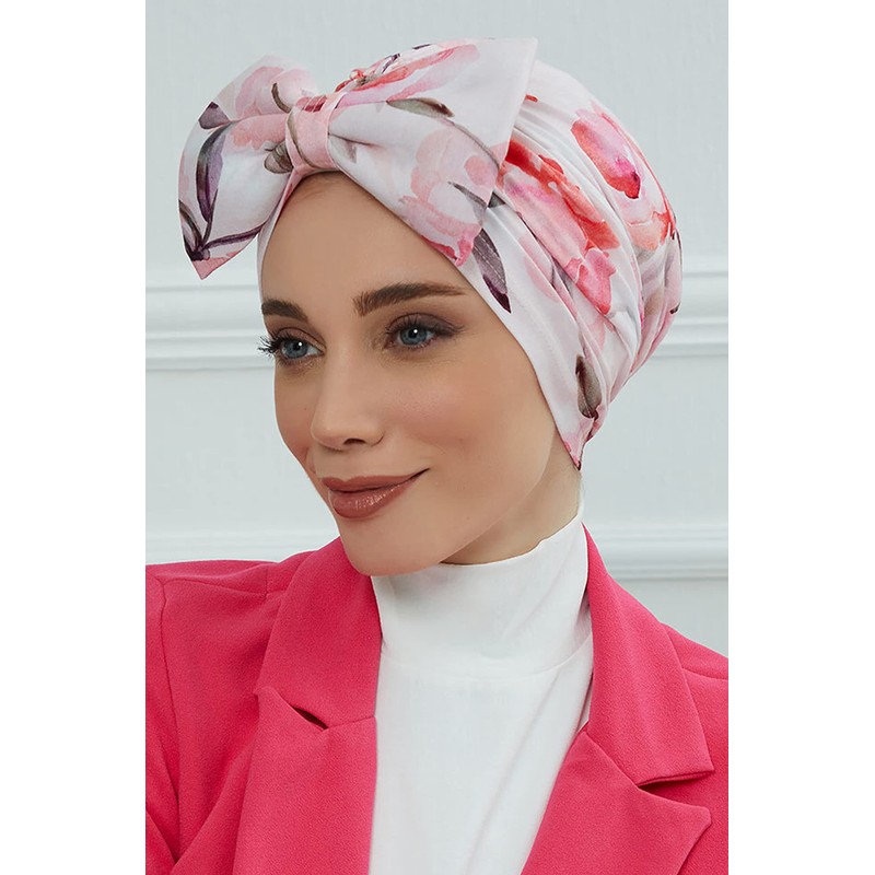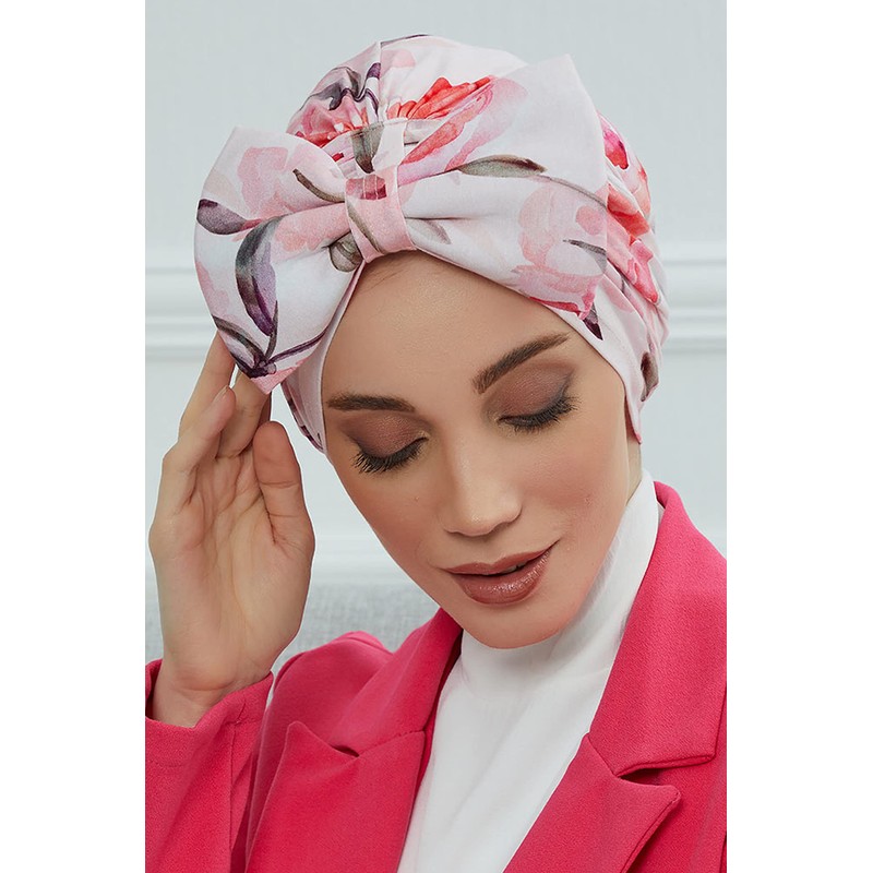 Aisha's Design Printed Instant Turban for Women 95% Cotton Head Wrap Lightweight Head Scarf Bonnet Cap with Bowtie Patterns, Rose Garden