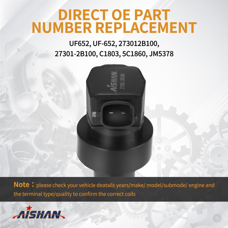 - 【Ignition Coil Pack】AISHAN ignition coils have been upgraded in both matches and OE design to ensure reliable operation over the engine speed range and maximum engine spark performance.It can as a direct compatible with factory part.It improves gas mileage,performance & driveability. Replacement OE Part No: UF652, UF-652, 273012B100, 27301-2B100, C1803, 5C1860, JM5378