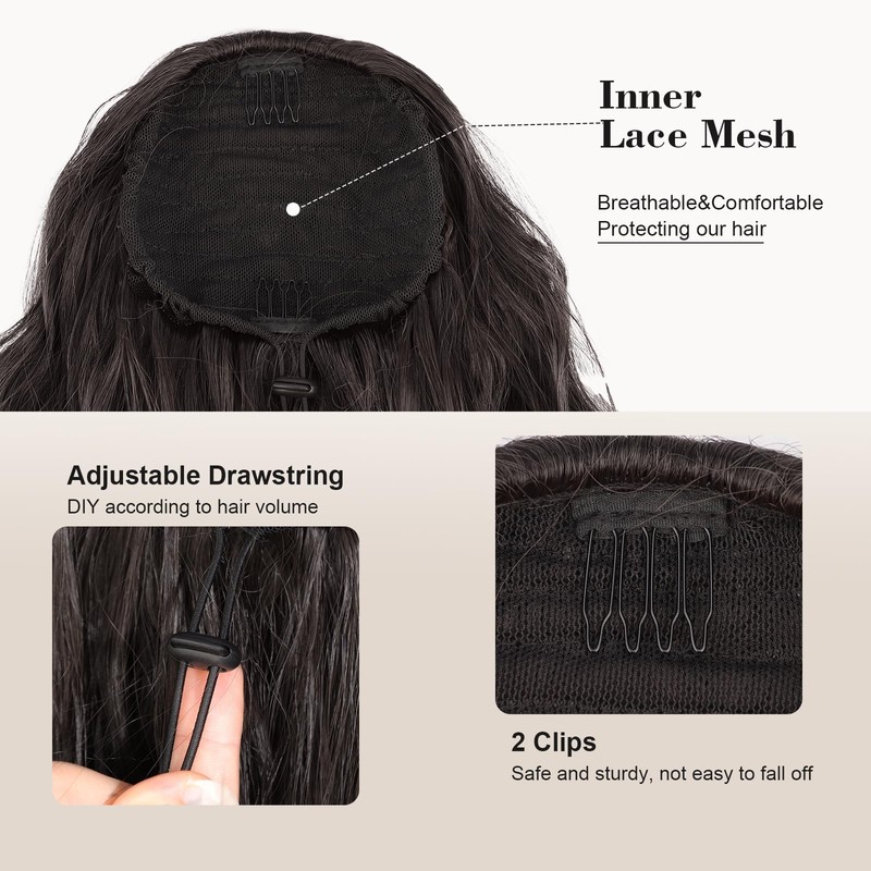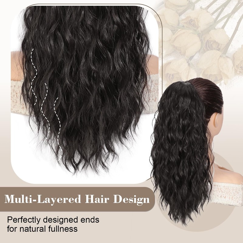 - High Quality Materials and Unique Multi layer Design:Our 18 inch curly drawstring ponytail is made of high quality heat resistant synthetic silk, which is lightweight and soft to the touch, and will not pull your scalp even if you wear it all day. The layered design of the overall shape makes the product fuller as a whole, and looks more natural when worn, adding a touch of fashion to the hair and enhancing the hair texture, just like your own perfect hair