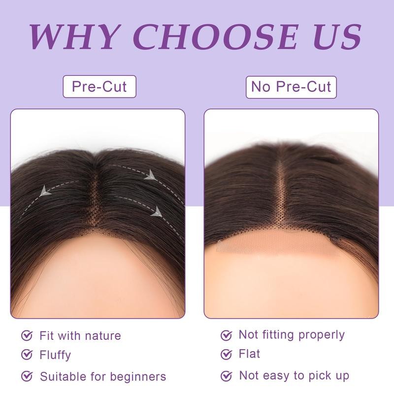 AISI HAIR FallFreshness 14 Inch Wave Wigs for Women Pre-Cut Lace Hairline Shoulder Length Middle Part Wavy Bob Synthetic Heat Resistant Fiber for Daily Use Stretchable Hair Net:_Brown Chestnut Highlight