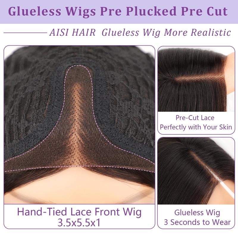 AISI HAIR FallFreshness 14 Inch Wave Wigs for Women Pre-Cut Lace Hairline Shoulder Length Middle Part Wavy Bob Synthetic Heat Resistant Fiber for Daily Use Stretchable Hair Net:_Highlights Brown
