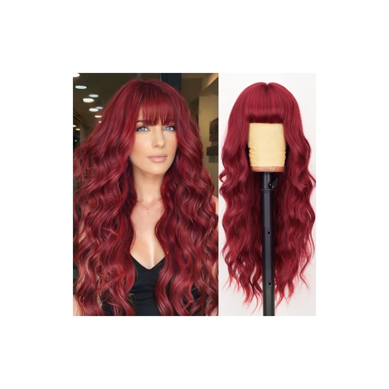 - 【Highly Recommend】Red wig with bangs, light and full hair style. Choosing this long wavy wig can quickly increase your hair volume and length, Transformed in one second, suitable for parties, birthdays, travel, celebrations, weddings, graduations, and daily life.