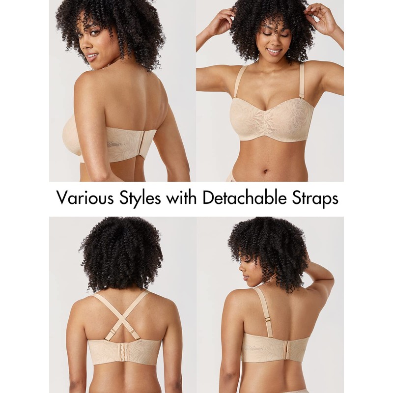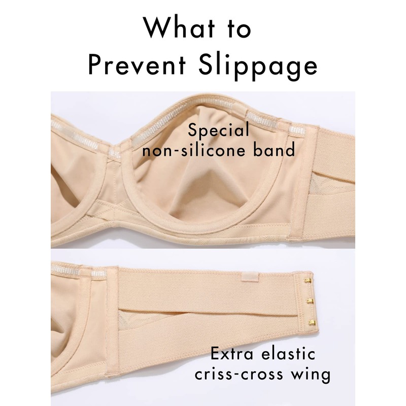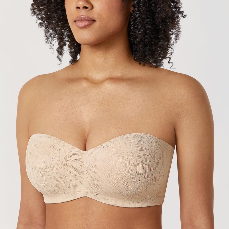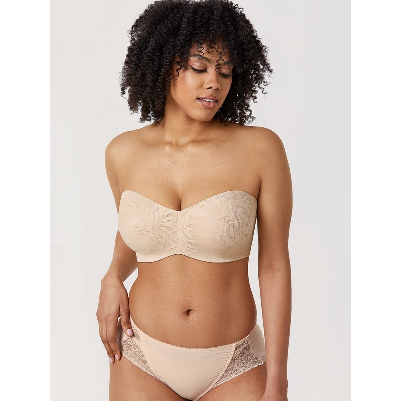 AISILIN Women's Strapless Bra for Big Bust Minimizer Unlined Underwire Plus Size Lace Bandeau Beige 38C
