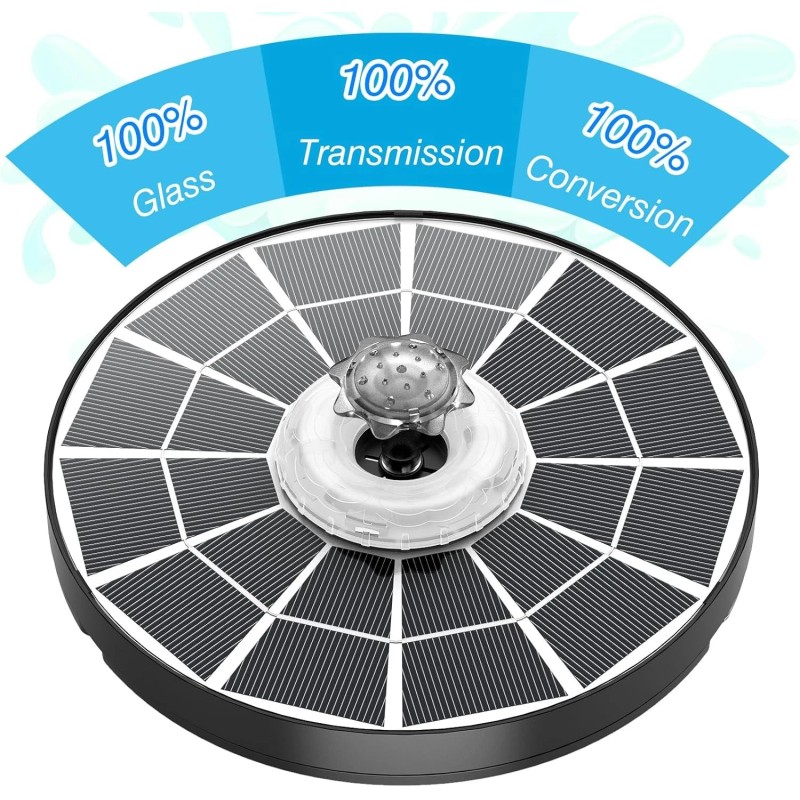 Our upgrade 4W led solar fountain is made up of a high-quality full glass panel measuring 180mm. Unlike traditional plastic materials, our glass panel solar water fountain is higher light conversion efficiency, and it lasts longer. Its smooth and stylish surface is not only beautiful, but also easy to clean.