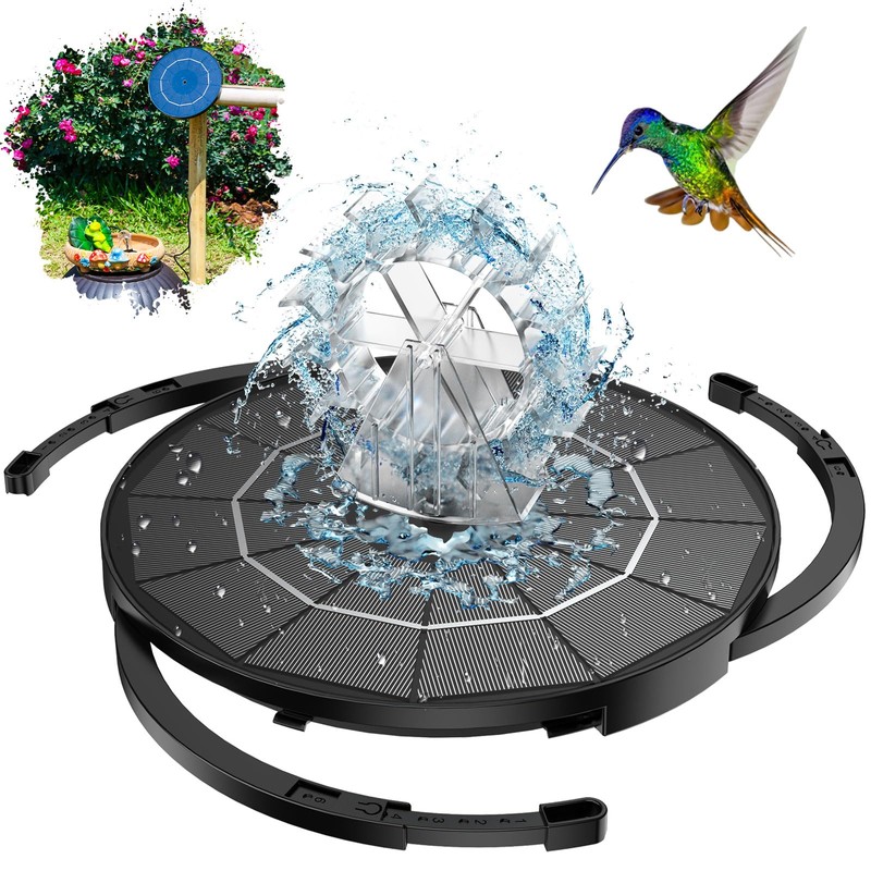• 【9 unique spray styles】: The solar powered fountain contains 9 different nozzles, one of which is a unique and innovative windmill nozzle. It has 9 different spray styles, you can freely DIY the nozzle to create different water spray styles, which is very suitable for attracting various small animals and making DIY water features outdoors. The nozzle is easy to assemble, and the solar bird bath fountain is perfect for bird baths, fish tanks, ponds, and pools