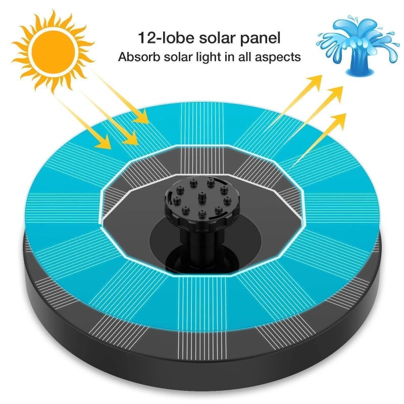MULTI-PURPOSE: This environmentally friendly solar fountain pump has a diameter of 5.1", which is very suitable for bird baths, fish tanks, ponds, swimming pools, gardens, outdoor, oxygen circulating water. Your garden will definitely attract all the attention of passers-by. Let your yard see It looks so interesting to be decorated by solar water pumps.
