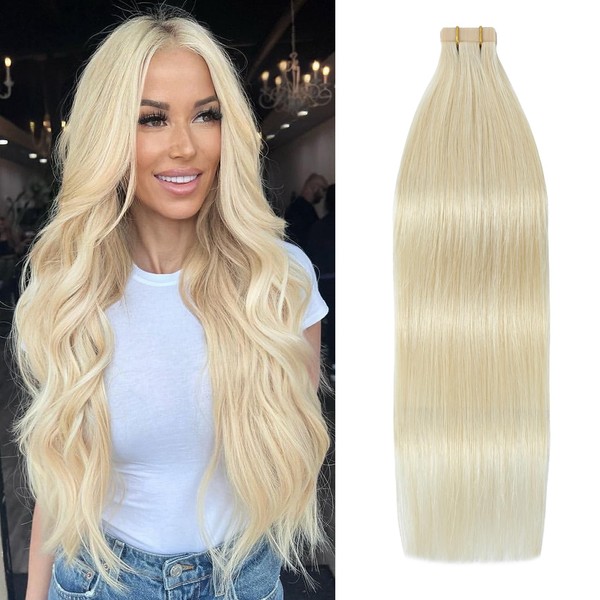Aison Tape in Brazilian Human Hair Extensions Remy Human Hair Glue in Hair Extensions Balayage Seamless Silky Straight Skin Weft 100% Natural Hair(20Inch #60 Platinum Blonde 20pcs 50g)