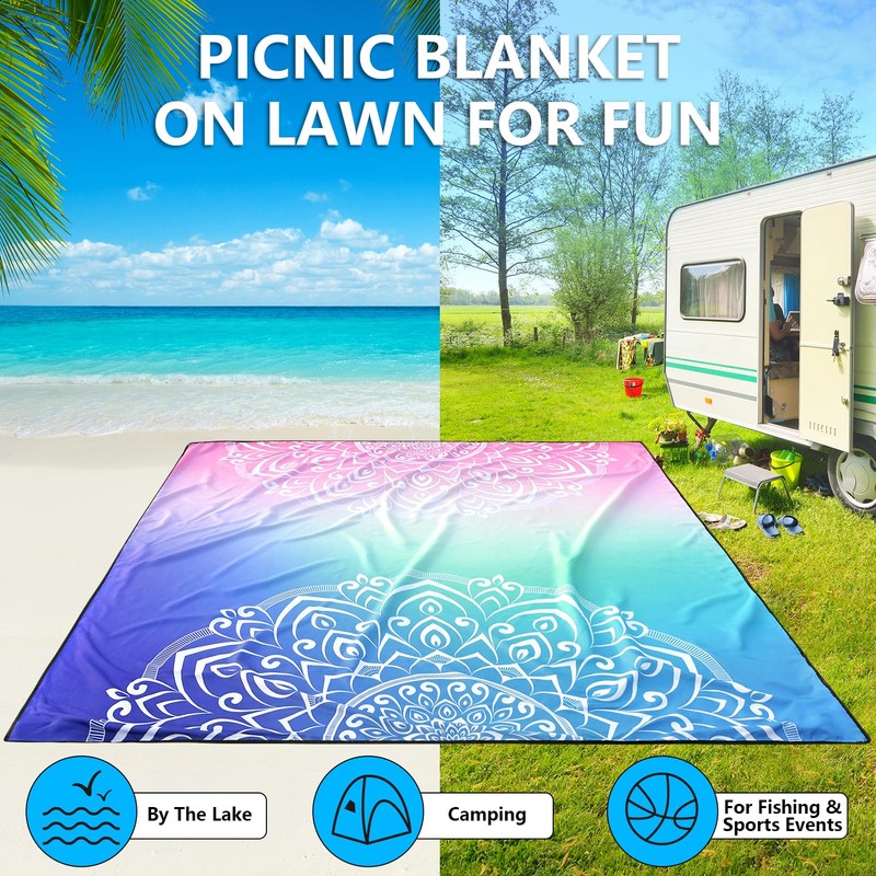 - 【Suitable For Multiple Occasions】 Use it as a picnic blanket,suitable for park, concerts, patio and lawn. Relaxing during vacation and enjoying a sand-free zone while the kids play with beach toys.It is a perfect summer beach gift for family and friends, for activities such as beach games, hiking, camping, etc.