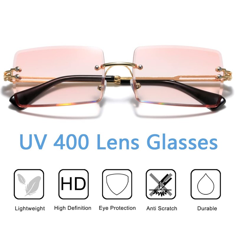 - Unique Rimless Design:The rimless frame and delicate metal temples makes these sunglasses look of very chic.It’s the perfect accessory for any outfit, can go with various of features and clothings. The most fashionable design, the perfect cover your eyes