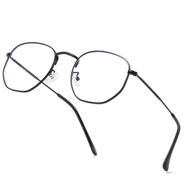 aisswzber Hexagonal Metal Blue Light Blocking Glasses Anti Eye Strain for Digital Screens Lightweight Frame for Men Women