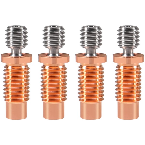 AITIAO 4Pcs V6 Hotend Heatbreak All Metal Threaded Upgrade Titanium Alloy and Copper Bimetal Throat Nozzle for V6 Hotend 3D Printers