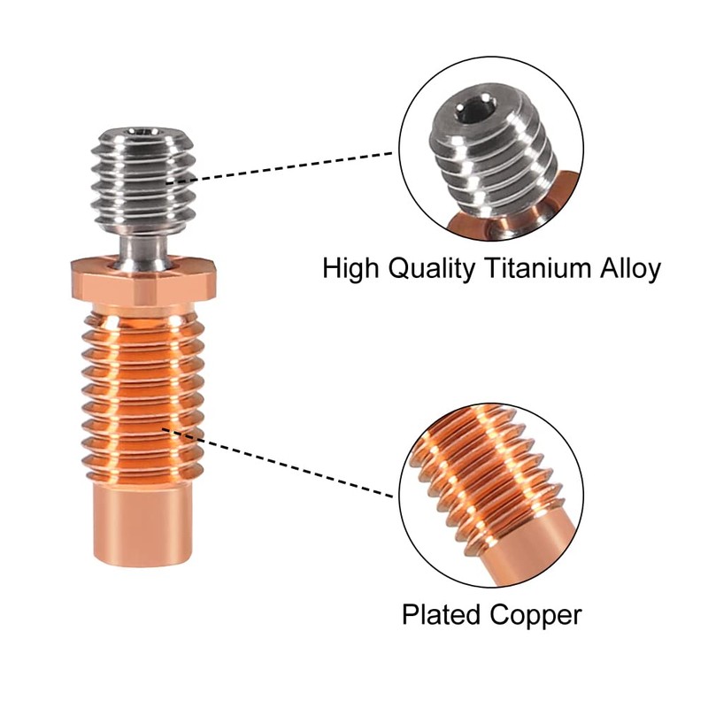 - This Heatbtreak is made from two components, copper and titanium alloy, we use a special process to hold them firmly together. You don't need to worry about it being damaged.
