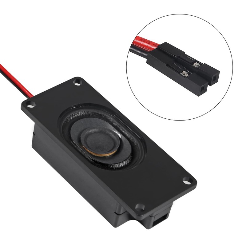• Full-Range Cavity Mini speaker: 8 ohm 3 watt; Connector: Separating 2.54mm Dupont interface, can choose 3.3V or 5V; Full frequency cavity. Size: 70 mm*31 mm*16 mm / 3.1 inch *1.2 inch*0.63 inch (L* W * T),cable length 40cm (15.75 inches)