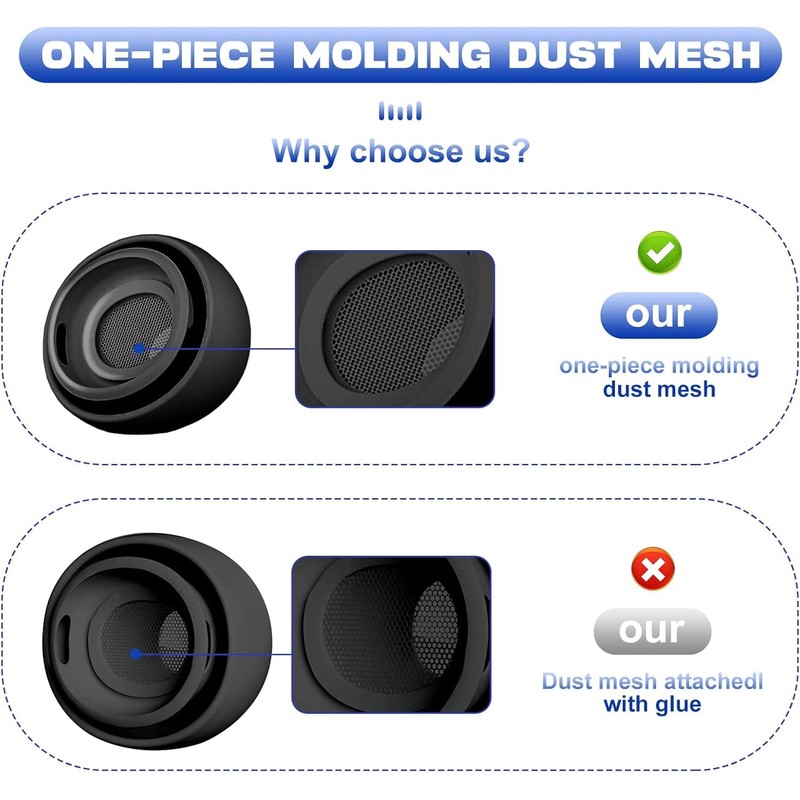 - 📌【Dust Guard Screen】 Each airpod pro tips has a built-in dust guard screen, Same as Originals,The one-piece molding process makes it more firm and not easy to fall off. There is no need to worry about sweat letting him fall off