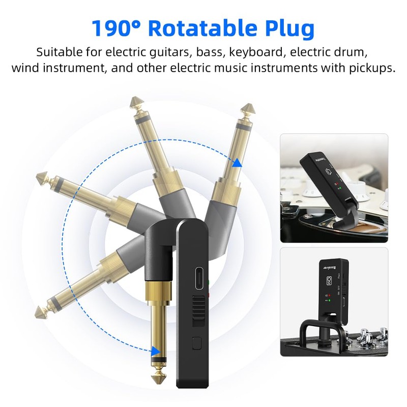 • 190 degree rotatable jacks for most of electric guitar, bass and up to 20m/100ft signal distance outdoor.