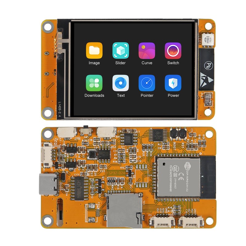 - ESP32 development board with a 2.4 inch screen and 240x320 resolution. Ideal for applications requiring low power consumption and featuring a core 32 bit CPU, 520KB and a frequency of 240MHz.