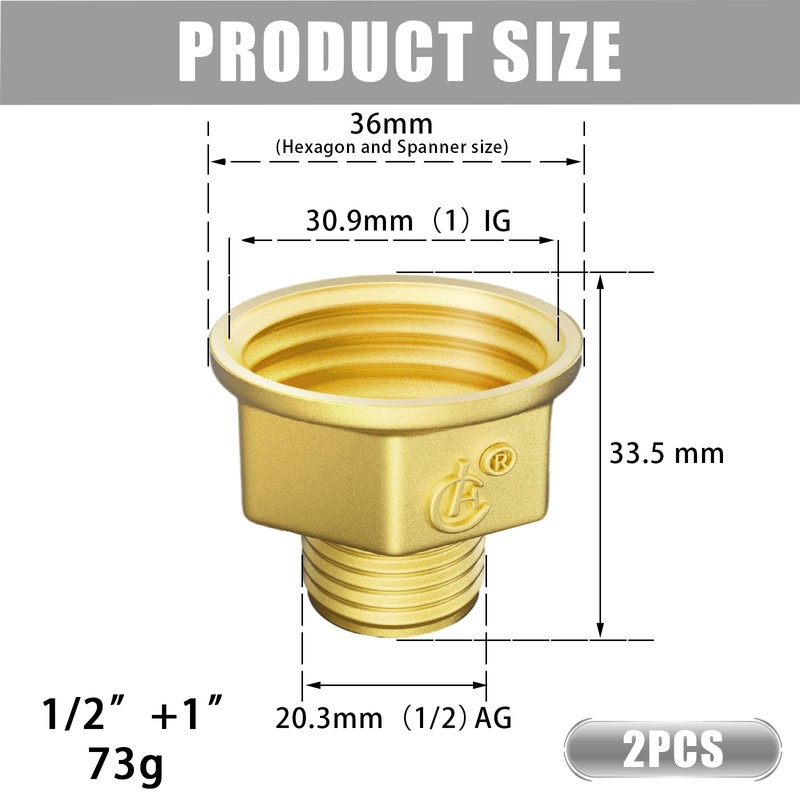 - 【Product contents】You will receive: 2 pieces reduction extension 1/2 inch male thread x 1 inch female thread. Please check the dimensions and quantity before purchasing.