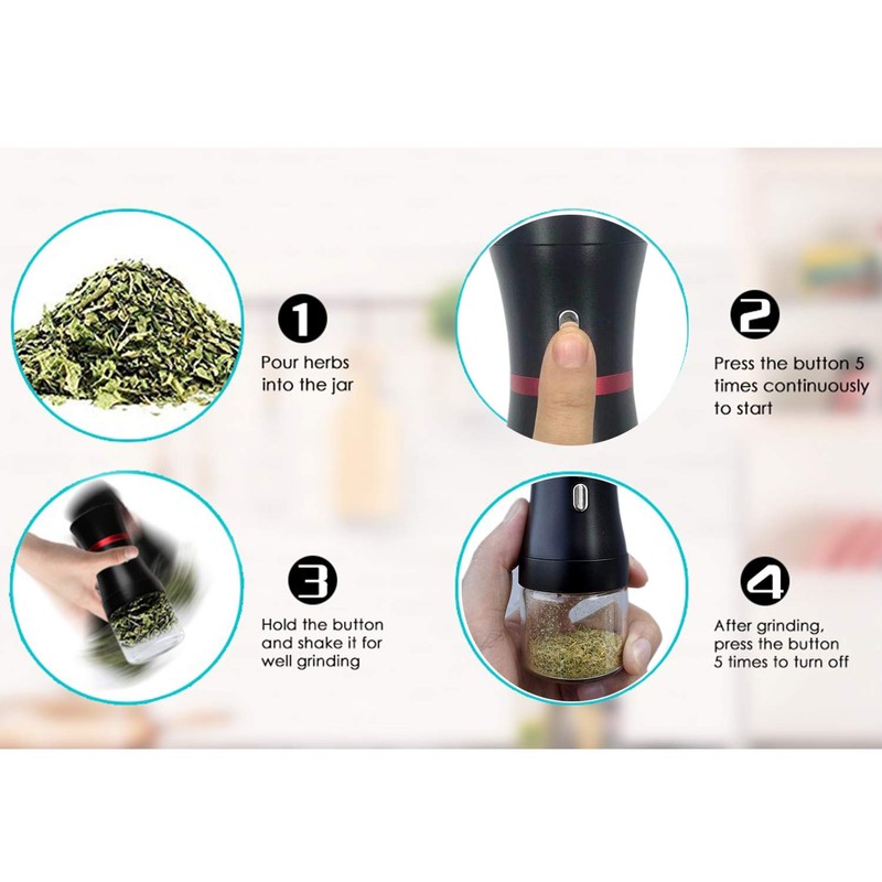 - 【Fácil de usar】Desenrosque el frasco y llénalo, presiona el botón 5 veces para encenderlo, presiona el botón para comenzar a trabajar, moler y agitar aproximadamente 10 segundos cuando muelas, presiona el botón para dejar de trabajar y disfrutarlo.
