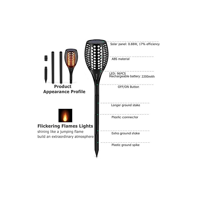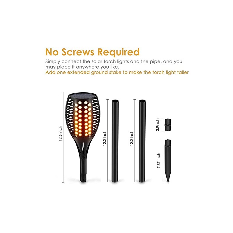 Aityvert Upgraded Larger Solar Torch Lights, Waterproof Outdoor Dancing Flames Lights, Flickering Flames Garden Lights, Landscape Decoration Pathway Patio Lights 43" 96 LED (6)