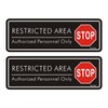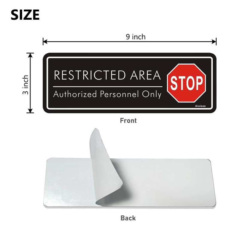 - Material: made of acrylic, The self adhesive Restricted Area Authorized Personnel Only Signs are 9"x3" and can be used indoor or out. They are waterproof.
