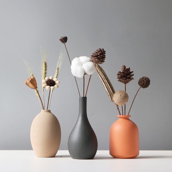AIVAR Pottery Flower Base Vase Single Vase Nordic Stylish Set of 3 Japanese-Style Vase Simple Small Flower Base Set Interior Artificial Flower Hydroponics Vase Present Gift (Set 1: Brown + Black +