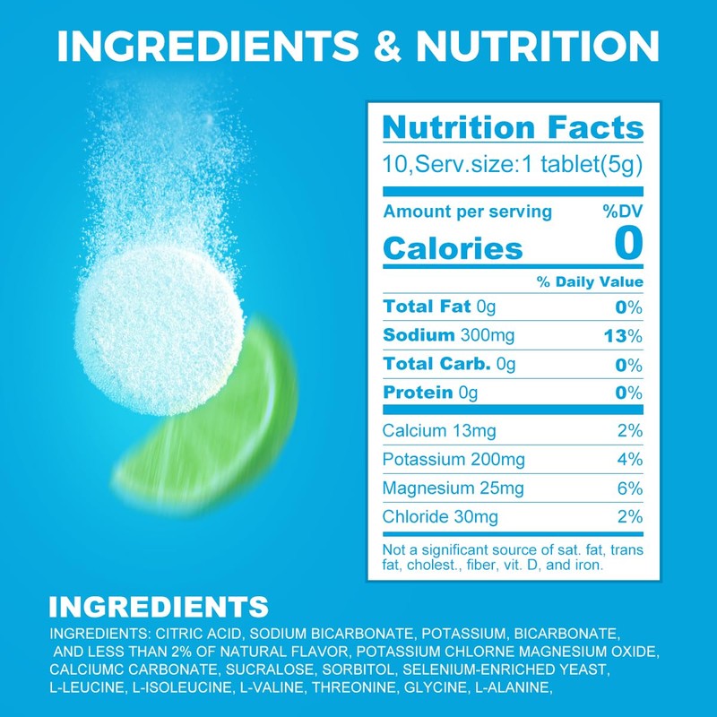 • Sugar Free &Zero Calories &Zero Carbs:With 5 essential electrolytes (sodium, potassium, magnesium, calcium, chloride), plus BCAAs and selenium to support hydration and performance. No sugar, non-GMO, vegan-friendly, and gluten-free