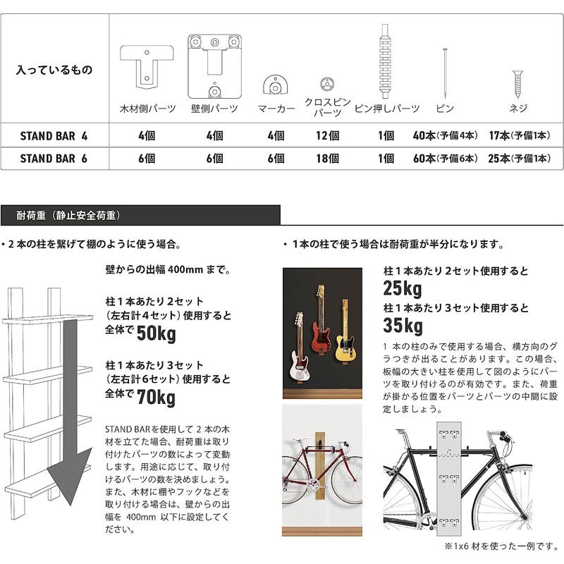 • Maximum supportable length of wooden beams for 2 wall anchored posts: 6’3” (1900 mm) or less