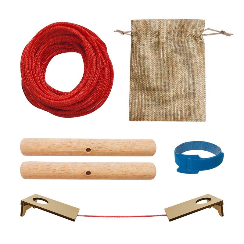 - Quality - Made with polished, laser engraved wooden sticks, 1/4" nylon rope, plus a bag for easy travel/storage.