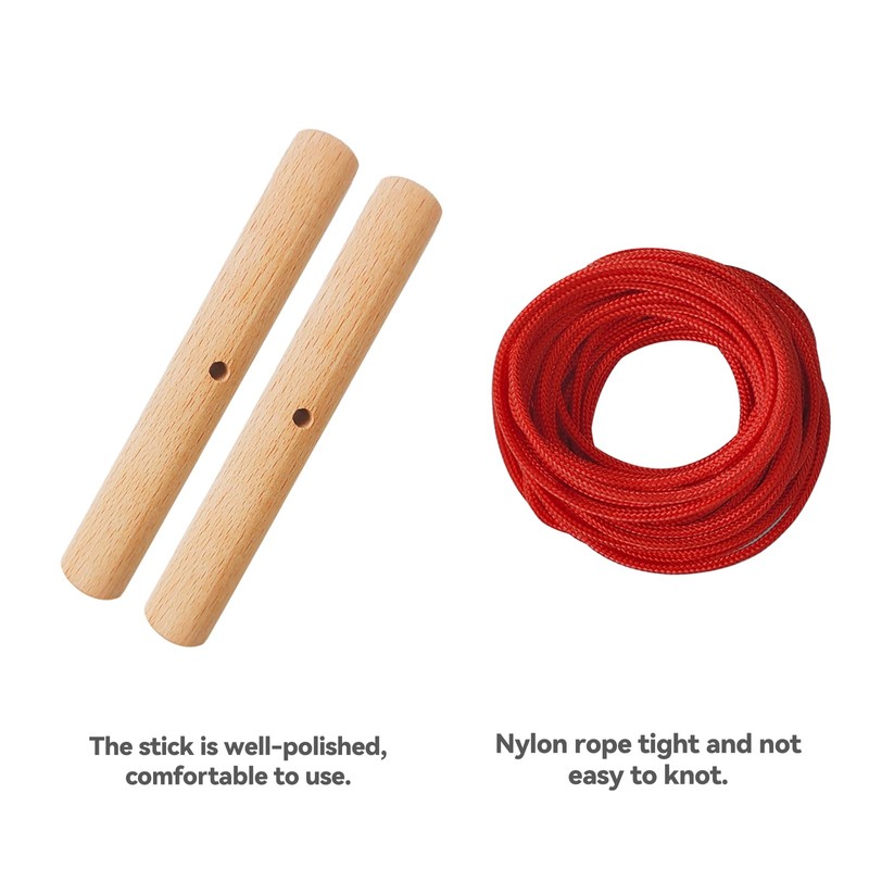 - Package Includes - 2 sticks, 1 hemp rope, 1 bag. The rope is tight and hard to stretch. The sticks are light and well-polished.