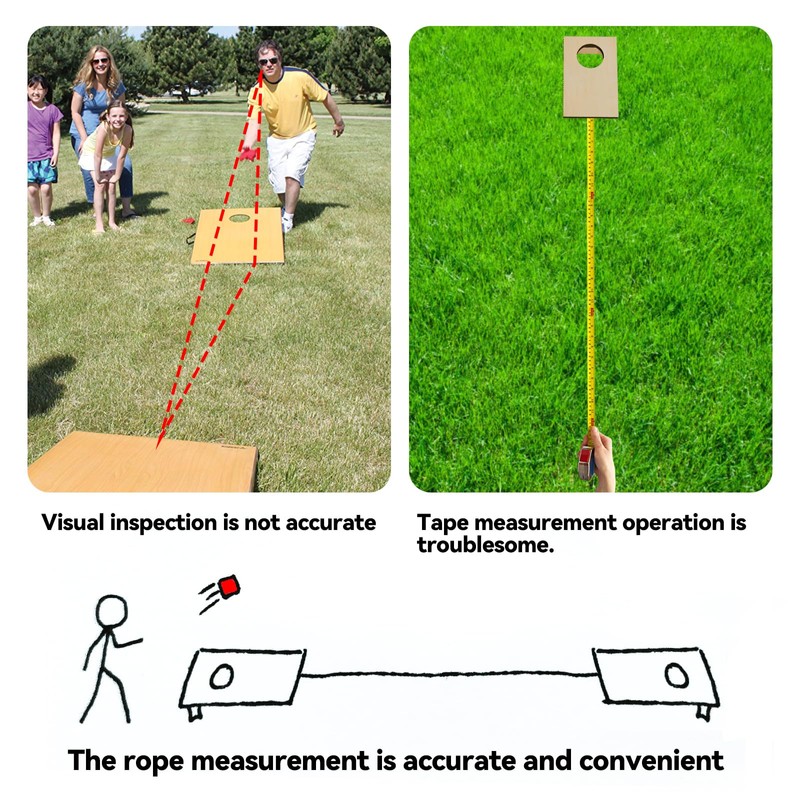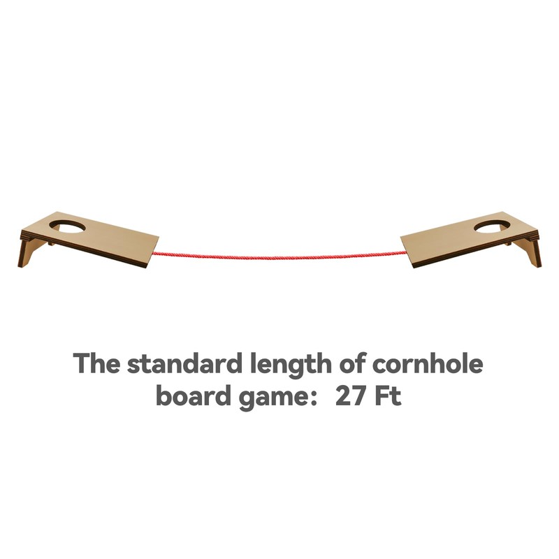 - Standard Distance - The cornhole boards distance setup tool will measure the 27 feet distance between the boards, which meets the professional distance needs of cornhole boards game.